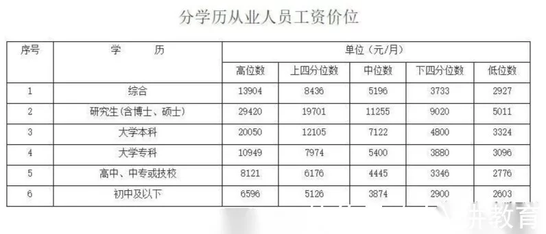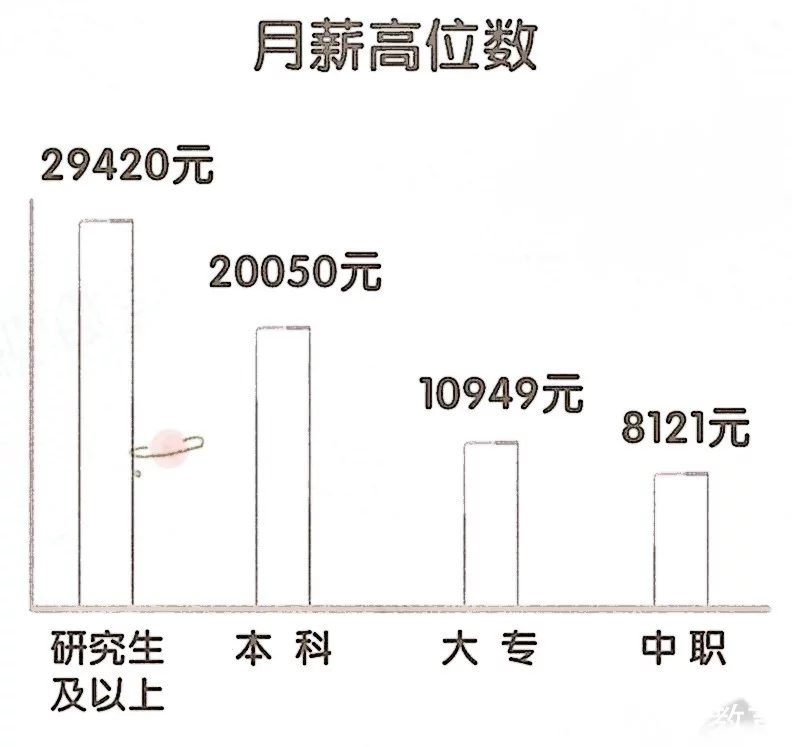 一份报纸发表了一份打工人工资段位数据表,这份数据是以武汉地区作为标准,盘点了一下不同学历打工人的平均薪酬。