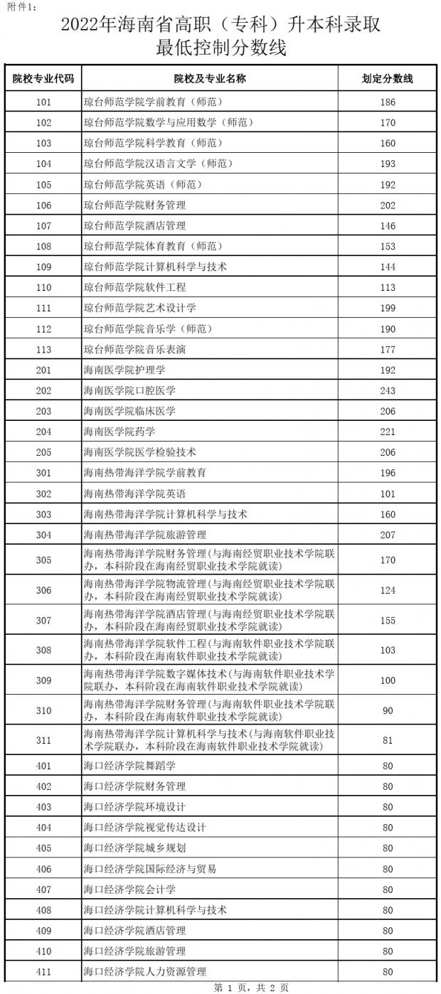新海南客户端、南海网、南国都市报6月30日消息(记者 黄婷 实习生 吴祖杭)海南省2022年高职(专科)升本科招生录取工作即将开始,6月30日,海南省考试局发布《2022年海南省高职(专科)升本科招生考试录取工作的公告》明确此次招生录取工作事宜,此次招生录取最低控制分数线出炉。