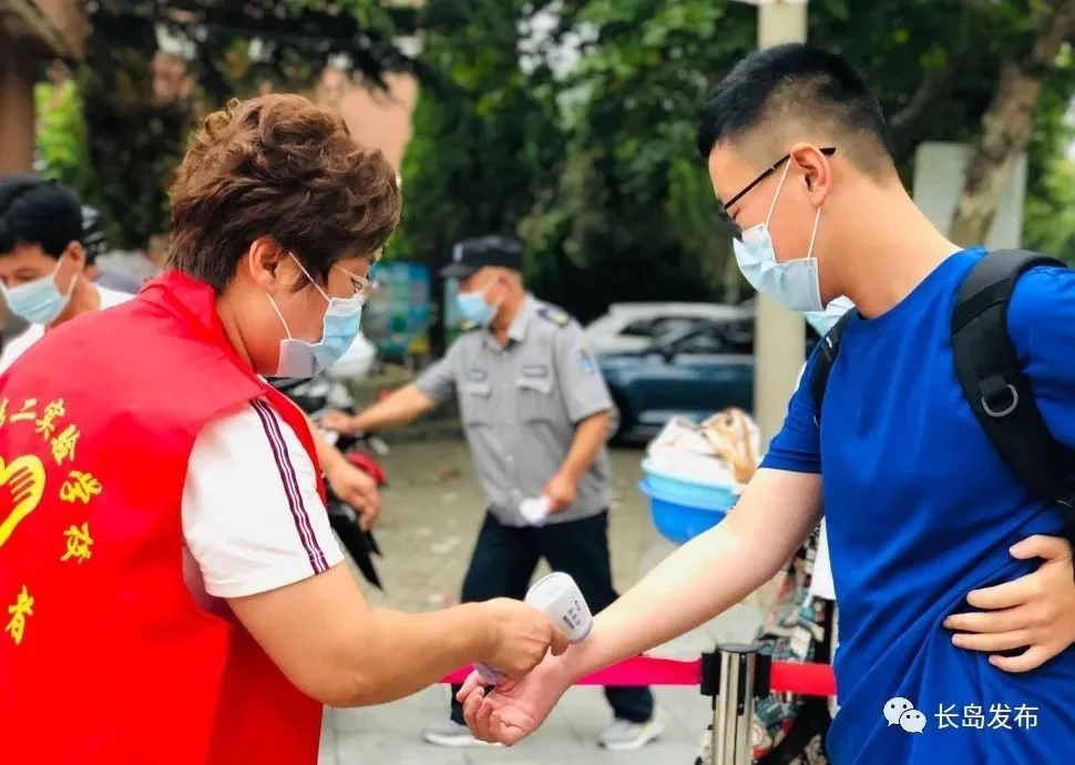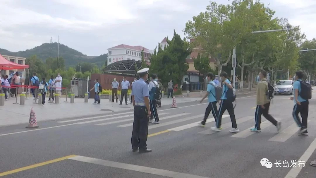 一大早,交警部门全员上岗,在通往学校的各个交通要道,布置警力,维持秩序,引导学生安全通行。各学校采取错峰报到的形式,尽量减少人群聚集。同学们间隔1米排队入校,经过体温检测,三码通查,有序进入学校。