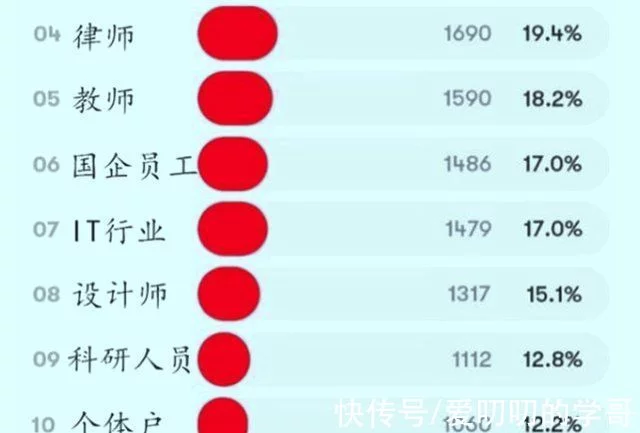 像国企员工、IT行业、设计师、科研人员和个体户职业也分别有入选,位列第6-第10的位置。