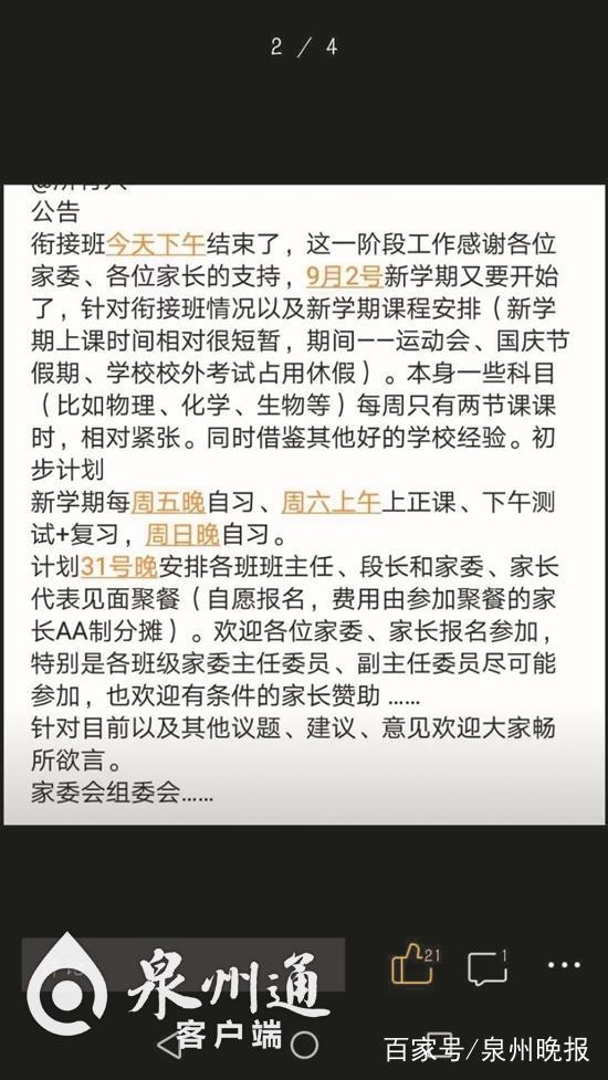 群里的公告证实确实存在衔接班学校:责令家委会退还费用