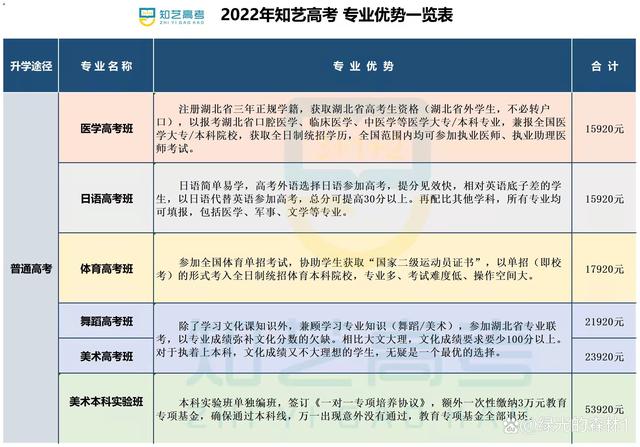 武汉知艺医学高考班,注册湖北省三年正规学籍,获取湖北高考生资格(湖北省外学生不必转户口),以报考湖北省口腔医学、临床医学、中医学等医学大专/本科专业,兼报全国医学大专/本科院校,获取全日制统招学历,全国范围均可参加执业医师、执业助理医师考试。武汉知艺高考面向全国招生,欢迎应往届初中毕业生报考,不限户籍,不限户籍,不限户籍!了解武汉知艺高考班更多详情,欢迎评论区留言