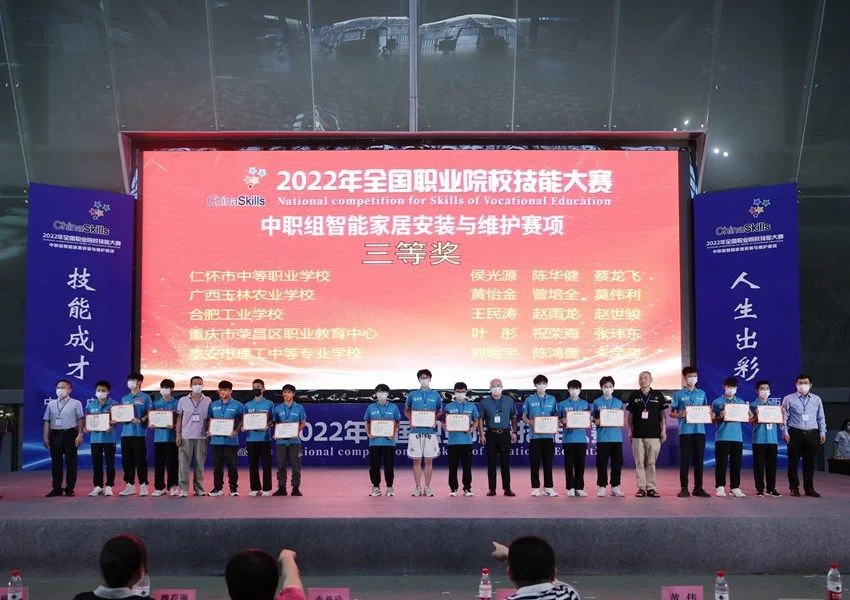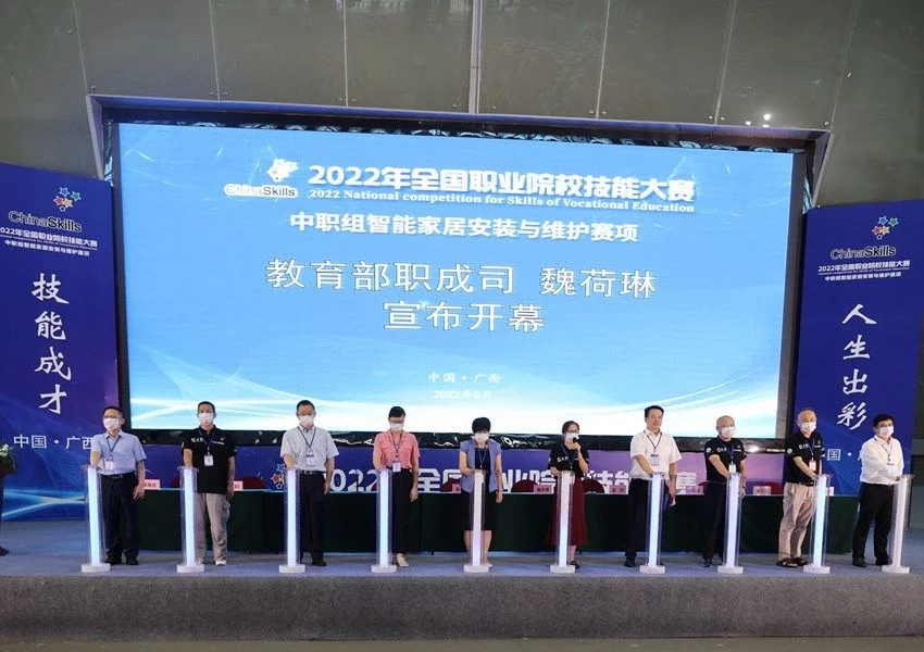近日,由教育部、天津市人民政府、广西壮族自治区人民政府等36个单位主办,广西壮族自治区教育厅、柳州市人民政府承办,柳州市第一职业技术学校、上海企想信息技术有限公司协办的2022年全国职业院校技能大赛(中职组)智能家居安装与维护赛项在柳州国际会展中心成功举办。此次共有来自全国32个省(自治区、直辖市,计划单列市)的54支代表队参加比赛。