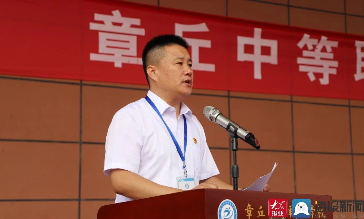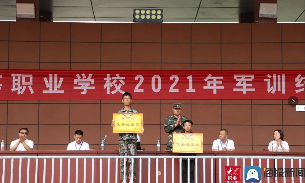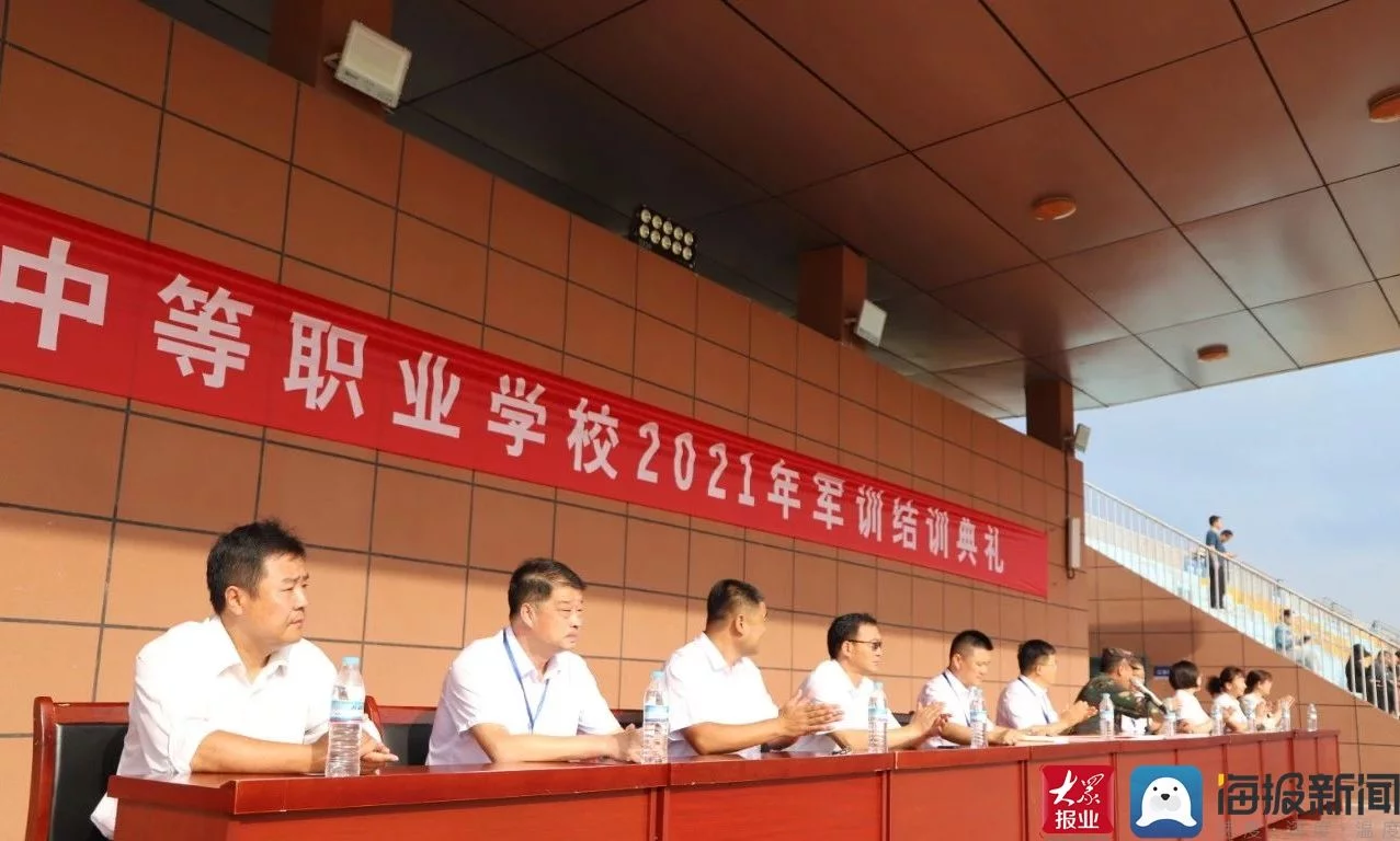 上午八点三十分,章丘中等职业学校2021级新生结训典礼正式开始,学校副校长刘卫东、副校长魏巍、军训总教官宝殿瑞、学生发展中心主任陈丙顺以及各专业系主任在主席台落座。商贸系2021级学生王锦呈 、王兆坤担任本次活动主持人。同时,整场活动还同步在钉钉上进行了直播。
