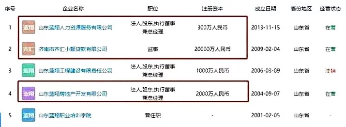尽管没有公布具体的营收数据,但是能看到,没什么负债的蓝翔,小日子过得还不错,而荣兰祥更是身兼多家企业老板或高管,除了搞实业培训外,还一早布局金融赛道,名下有小额贷款公司,还持股济宁银行,加码地产投资,保守估计,身价超数十亿。