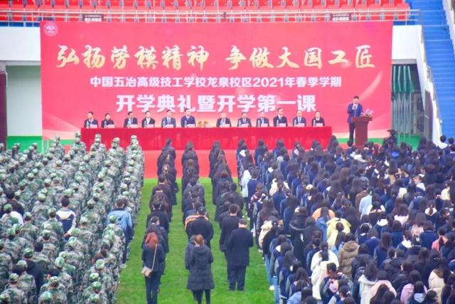 踏着春天的脚步,迈进崭新的征程。3月9日,中国五冶高级技工学校龙泉校区举行了以弘扬劳模精神,争做大国工匠为主题的2021年春季学期开学典礼暨开学第一课。学校党支部书记、校长付恩才,副校长陈晨、刘伟,校长助理田天飞,校办主任曾雪松及各部门相关负责人出席典礼,全体师生参加典礼。会议由团委老师杨迪主持。