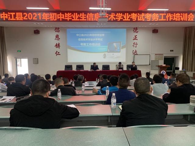 4月25日,中江县2021年初中毕业生信息技术学业水平考试考务工作培训在城东中学举行,全县高完中、初中、职业中专及富民技校教导主任和信息技术理员等120余人参加培训。