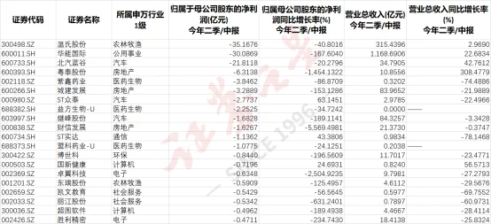 此外,还有粤泰股份、紫鑫药业、城建发展、ST众泰、益方生物、继峰股份、财信发展、ST实达、盟科药业等多家上市公司上半年亏损1亿元。