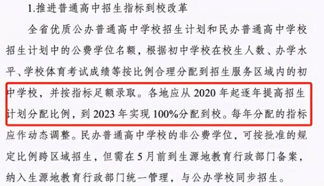 在文件当中表示各地应该从2020年起提高招生计划的分配比例,并且按照比例在2023年实现100%分配到校。也就意味着无论自己的孩子考多少分都有学校可以上,只不过学校与学校之间存在着一定的区别。