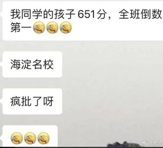 网上有个聊天截图,海淀名校的孩子考了651分,在全班倒数第一。