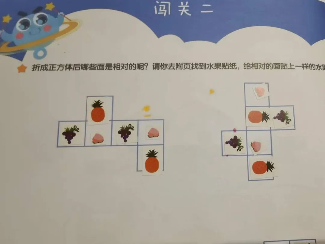 第二题考的是正方体拆开之后面与面的对应,编辑部老姐姐一眼看出了:这题我5岁的儿子也会啊!