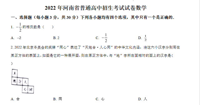 产生高分扎堆现象的原因可能是,中考题目变简单了。我在网上搜到一份河南中考真题,数学卷打开看到前两题,第一题简单到我忍不住往深了想,会不会有坑?