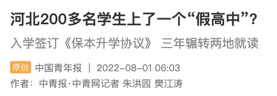 近日,中国青年报报道河北200多名学生疑上假高中的消息,引发关注。