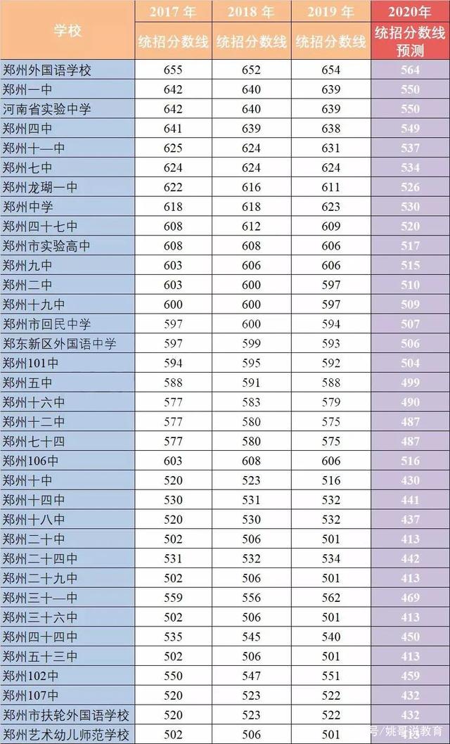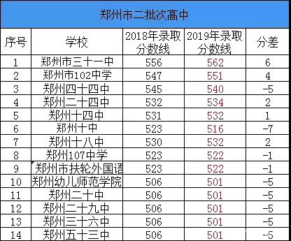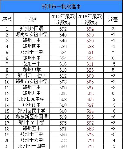 郑州18-19年各高中录取分数线