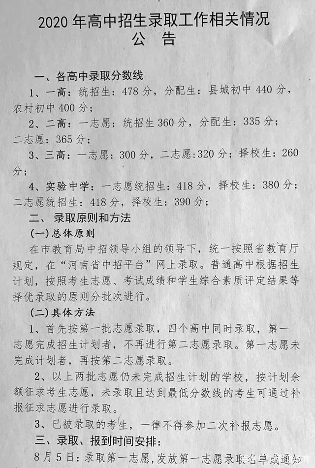 3、栾川县实验高中、栾川县第二高中,均为8月13日录取。若当日未录满,可降分投档,8月14日继续录取,直至招生计划录满为止。