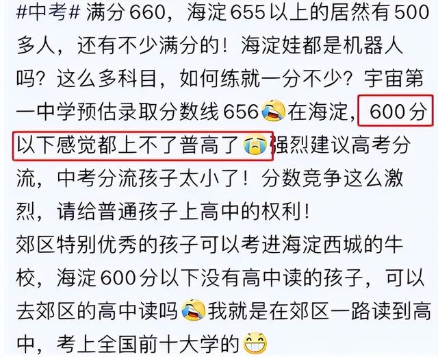 无独有偶,在北京下发了中考成绩之后,家长们更是表示欲哭无泪了。