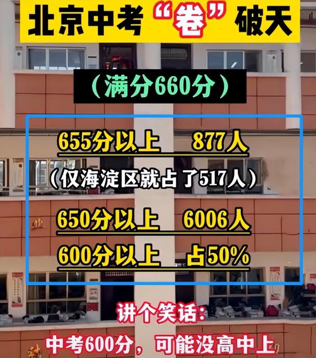 北京的中考满分为660分,而经过数据统计,考上655分的考生就已经超过了877人,其中还有517名考生都来自海淀区,不得不说,海淀区今年中考真的是太卷了。