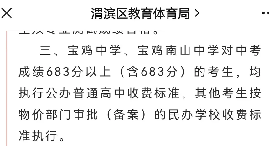 将中考成绩保持在680分以上,可以说考生的自身实力是足以得到认可,那么对于这部分同学,宝鸡中学发布通知,683分以上,包括683分的同学,如果报考宝鸡中学,那么可以将学费自动调到公办学校的标准。