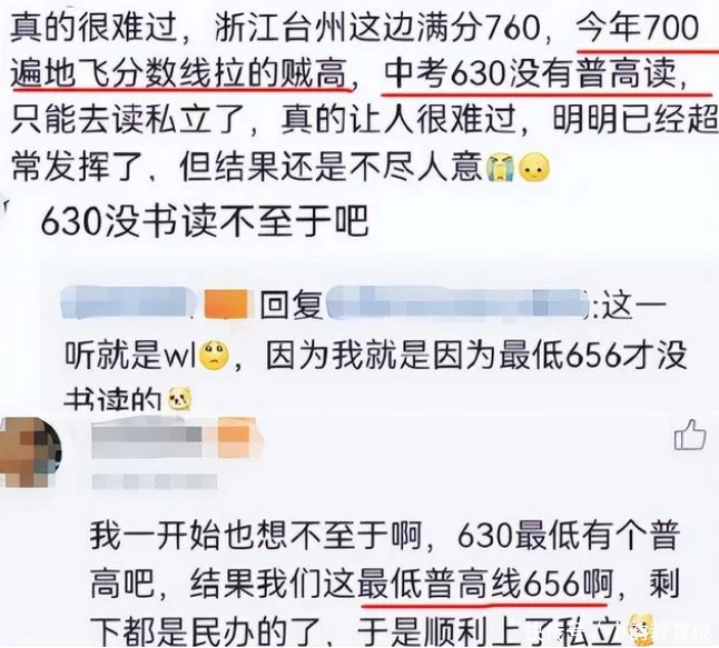 明明自己已经很努力了,但没想到还有人比自己还努力!据网友爆料,在台州市不少成绩在630分的考生都已经没有普高读了,要么读私立要么读职业。