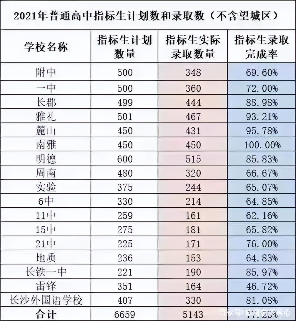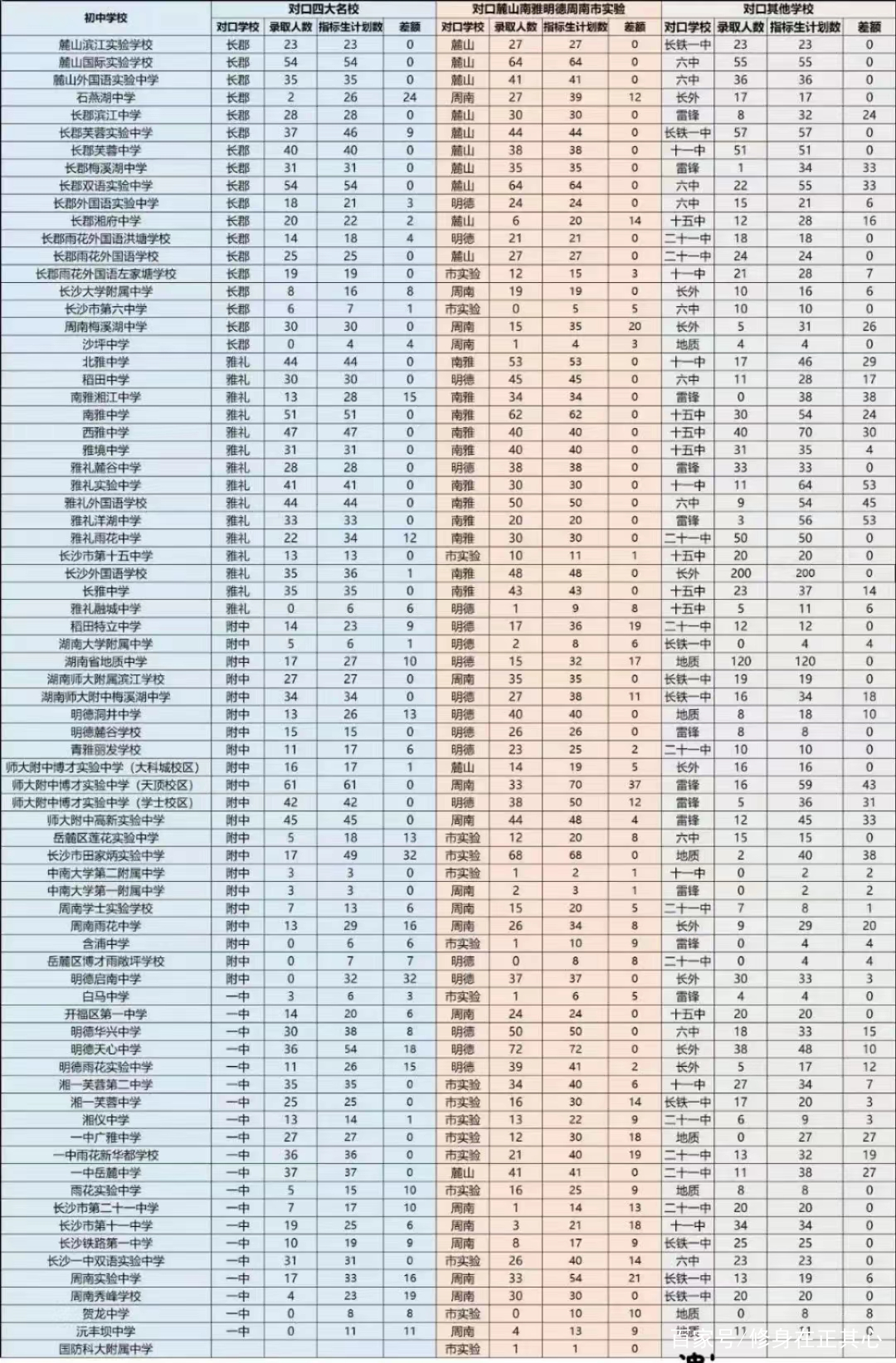 我们说指标生计划没有完成,部分是由于初中学校教学质量较差,没有达到四大的基本要求。比如石燕湖中学,有长郡26个指标,实际录取2人。
