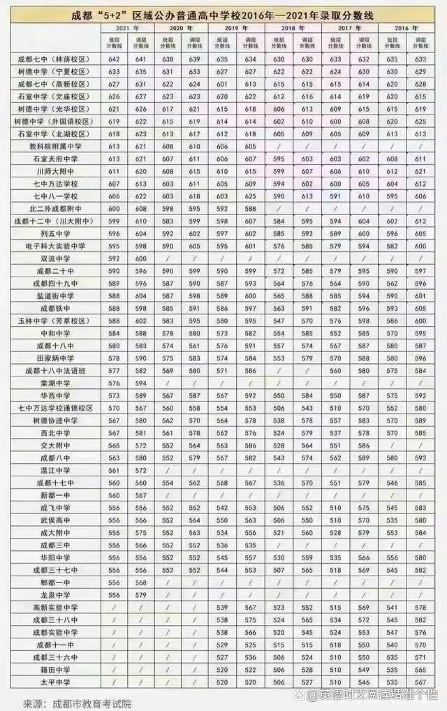 其中,成都七中林荫校区。2021年高中最高录取分数线:642分,开启成都高中录取分数的新突破!