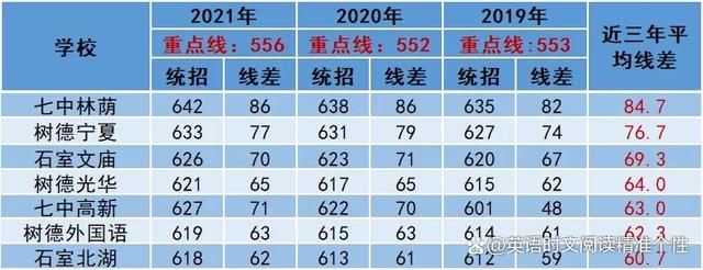 以上7所高中,近三年平均线差在30分以上。