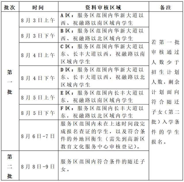 1. 为有序、高效做好核证工作,我校制定了《分批报名安排表》,请家长们严格按照此表安排,分区域、分批次错峰来校核证,以免耽误您的宝贵时间。