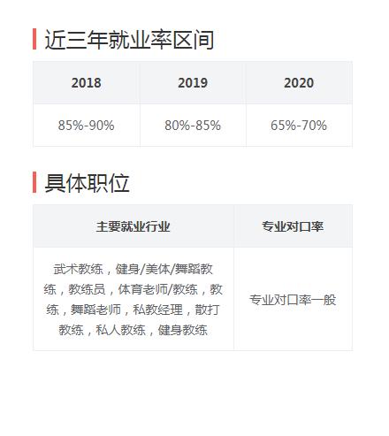 本专业毕业生适合在各类学校、业余体校、武术馆(院)、各级体育部门及武术运动队、公安、部队、健身机构、武术研究机构等单位从事训练、教学、管理工作。此外,本专业毕业生还可以继续攻读本专业或相关专业的硕士学位等。