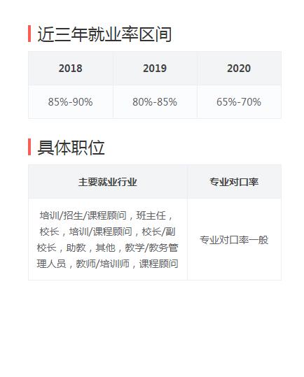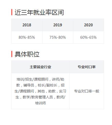 主要是在大中专学校中小学等教学单位以及工商部门、公安部门、社区体育指导部门、企事业工会部门从事学校体育科学研究、学校体育项目管理、社会体育指导等工作。就业率目前很高,其中最主要的就业领域为教学单位和高等学校。随着社会的发展,中小学生的身体素质教育越来越重要,高素质的体育教育专业教师将成为学校和社会的热门职业。