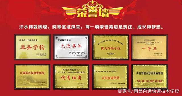 南昌向远轨道技术学校供图南昌向远轨道技术学校先后荣获江西省教育系统先进集体、省市双达标学校、优秀等级学校等多项骄人荣誉。