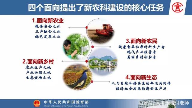 在新农科建设方面重点是以现代科学技术改造提升现有的涉农专业,并且要布局适应新产业、新业态发展需要的新型的涉农专业。围绕乡村振兴战略和生态文明建设,推进课程体系、实践教学、协同育人等方面的改革,为乡村振兴发展提供更强有力的人才支撑。