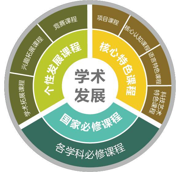特色核心课程模块包括核心认知提升课程、语言特色课程、科技艺术特色课程和项目课程,引导学生在思辨中认知自我、感悟社会,在实践中激发潜能、学以致用。