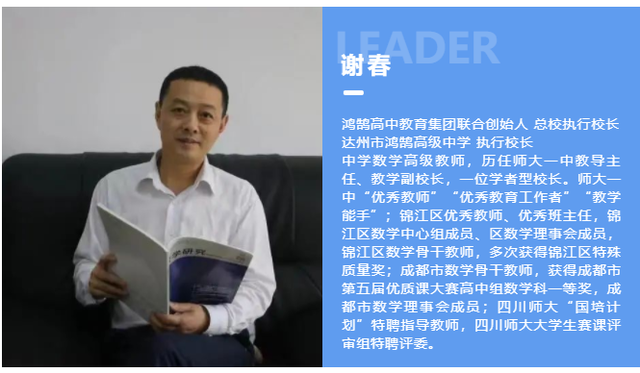 鸿鹄高中教育集团汇集名师办名校,打造以成都四七九中名师、清北毕业老师、成都绵阳其他名校为主体的教研班底,核心教研团队研究生以上学历及高级职称以上的教师占比达90%。
