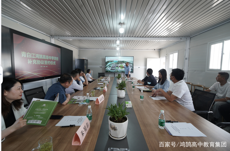 参观结束后,鲁局长一行和集团领导来到资阳市鸿鹄高级中学项目部展开座谈会。鲁局长强调,青白江区教育局非常重视鸿鹄高中项目的引进。鸿鹄高中教育集团作为创新型高中教育的探索者、领路人,要坚持立德树人这个根本标准,把握教育发展的客观规律,积极探索实践新思路新方法;区教育局将倾力做好项目的协调服务,确保能早日推进项目实施,为建设一流教育强区贡献力量。