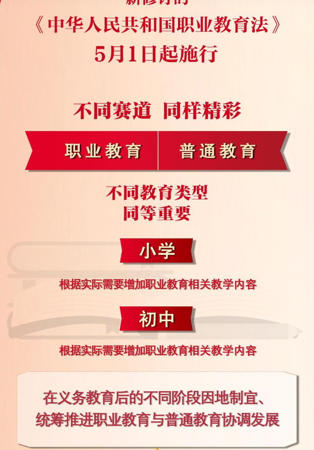今年5月1号新修订的《中华人民共和国职业教育法》正式实施。