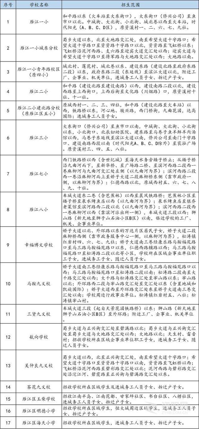 小学:①优抚对象、②雁江户籍、③非雁江户籍随迁人员子女。
