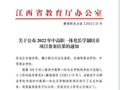 已列入2022年江西省3+2中高职一体化长学制