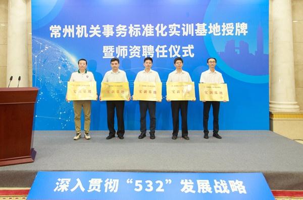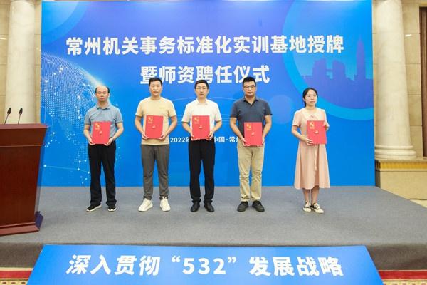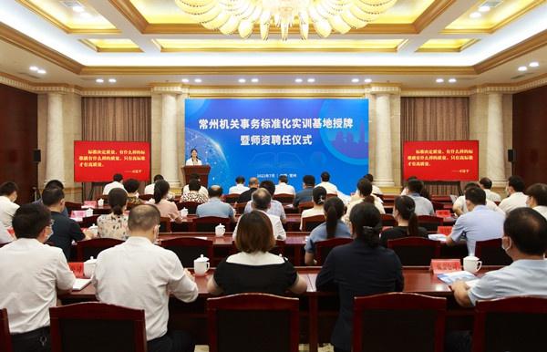 7月21日,常州市机关事务管理局举行常州机关事务标准化实训基地授牌暨师资聘任仪式,常州市政府副市长徐华勤为5所高职院校授牌,常州市机关事务管理局局长蒋鹏飞为教师代表颁发聘书。
