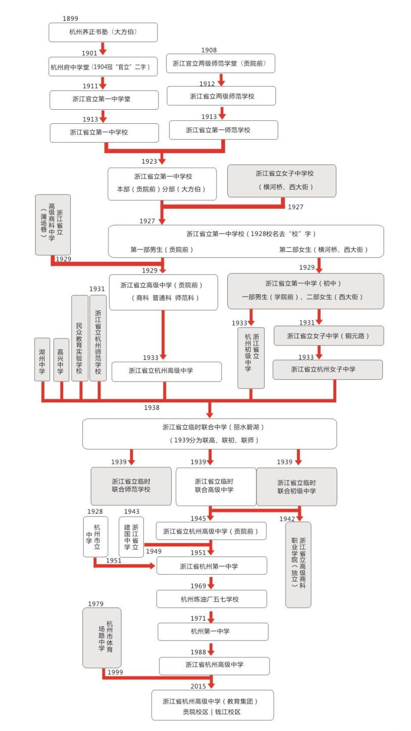 而养正书塾经历杭州府中学堂、浙江省立第一中学、浙江省立杭州初级中学等多次改名,最终变为杭四中,因此可以说杭四中与杭州高级中学同宗同源。