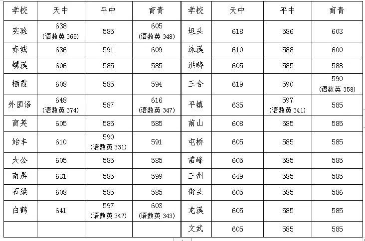 五、其他三所普通高中预估分数线(以实际录取分数线为准)