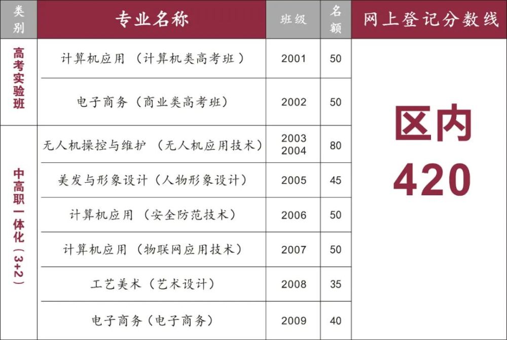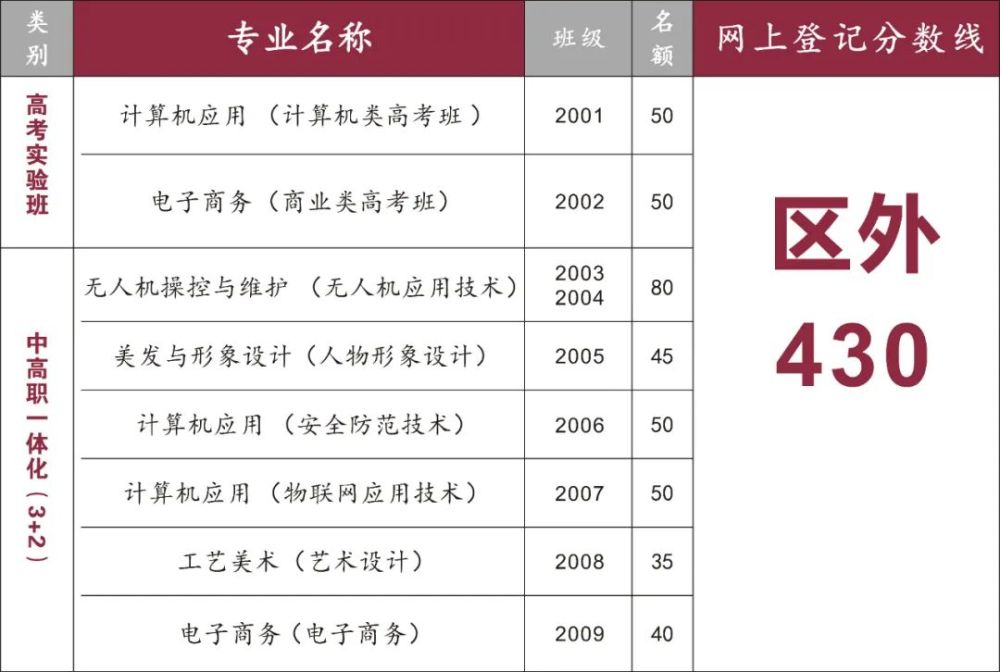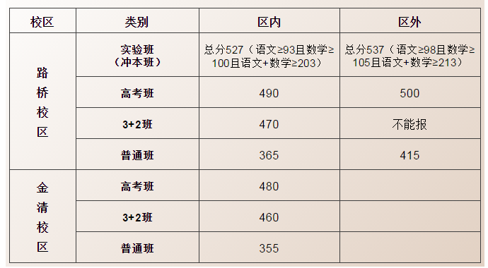 其他县市考生中考成绩≥500分可报高考班,≥415分可报普通班。