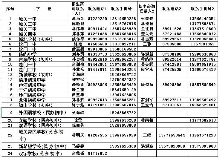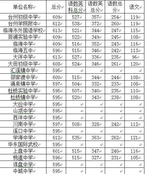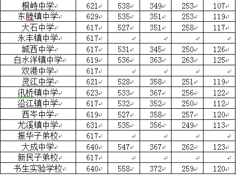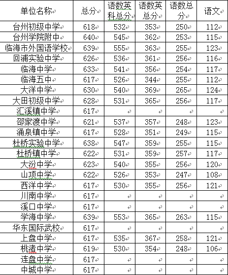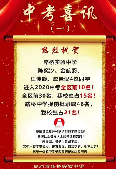 楚门中学、玉城中学、实验学校、坎门中学录取结果公布