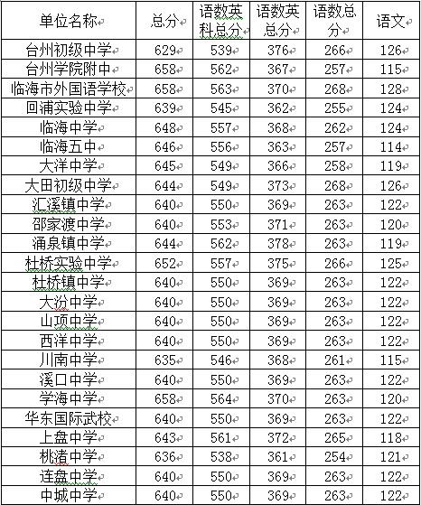 2020年台州市区普通高中第一批(特长生)已录取完成。第二、三、四、五批录取分数线划定,一起看以下汇总~