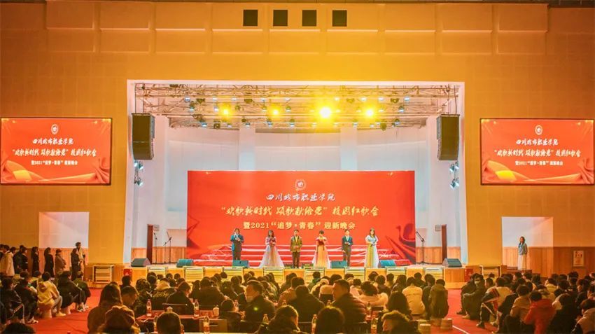 为庆祝中国共产党成立100周年,12月29日,我校在成都校区艺体馆举行欢歌新时代 颂歌献给党校园红歌会暨2021追梦 青春迎新晚会。