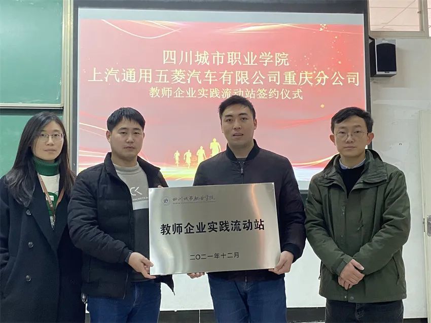近日,我校智能制造与交通学院同上汽通用五菱汽车股份有限公司重庆分公司 企业教师实践流动站揭牌仪式在我校顺利举行。我校汽车检测与维修技术专业负责人罗森侨老师主持活动,上汽通用五菱汽车重庆分公司人事经理骆超及智交分院院长助理罗吉出席活动。