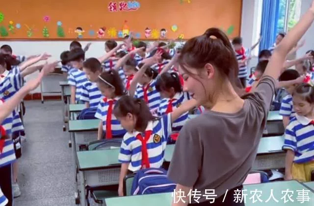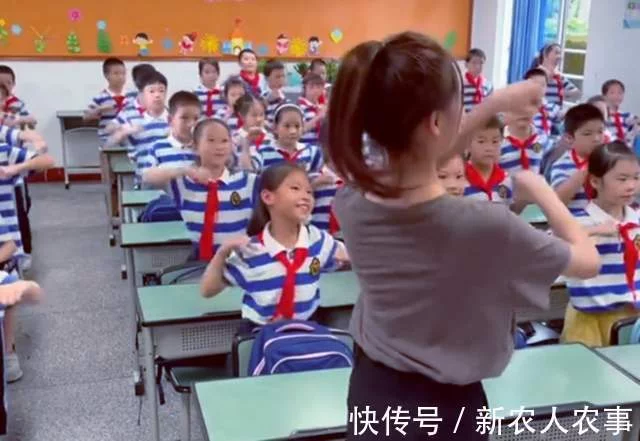 老师是一位90后,不仅人长得漂亮,舞蹈也跳得好。为了缓解孩子们学习中的紧张,美女老师在教室里带领孩子们一起跳创意课间操,并亲自在讲台前面领操。音乐不是传统的广播体操的音乐,而是童年歌曲《让我们荡起双桨》,动作也不是传统的广播体操的动作,而是老师自己排练的。