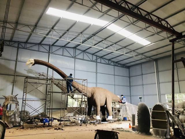 8月5日,在自贡亘古龙腾科技有限公司的制作车间里,一组组搭着脚手架的大型仿真恐龙,正在紧锣密鼓地进行最后的硅胶裱糊收尾工作。这批仿真恐龙,将在下周发往美国、德国和秘鲁等地,在当地的游乐园进行展示。