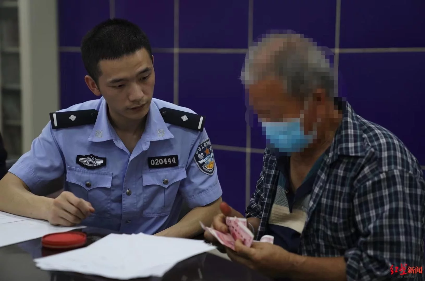 感谢警察同志,帮我们追回了养老钱。6月9日,四川自贡市公安局大安分局凤凰派出所举办了一场集中发还仪式,将追回来的7000余元现金分发给了9名受害老人,接过失而复得的钱,老人们激动不已。