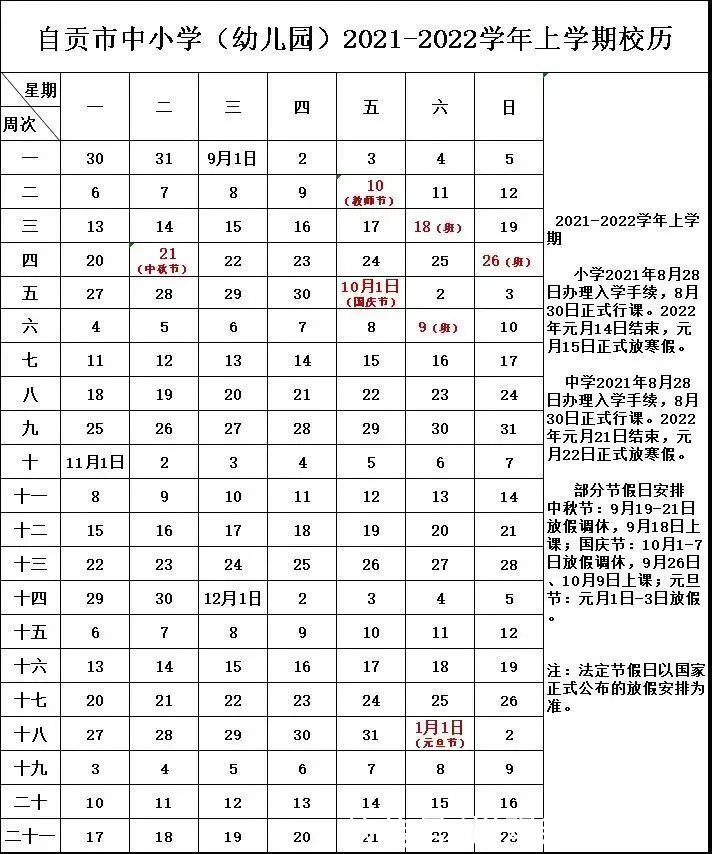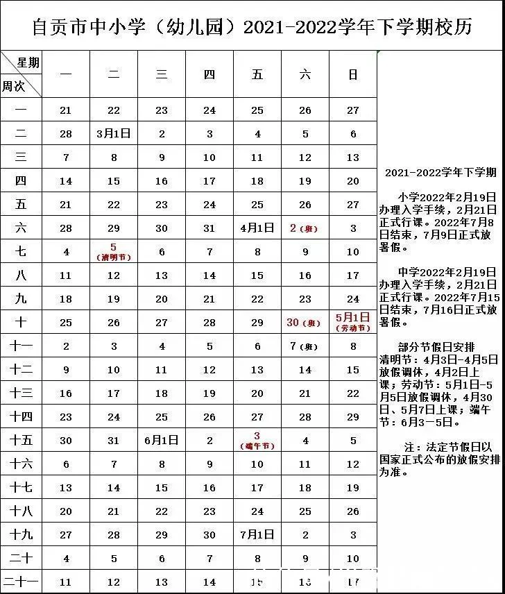 自贡市小学(幼儿园)寒假从2022年1月15日开始到2月17日结束,中学寒假从2022年1月22日开始到2月17日结束。