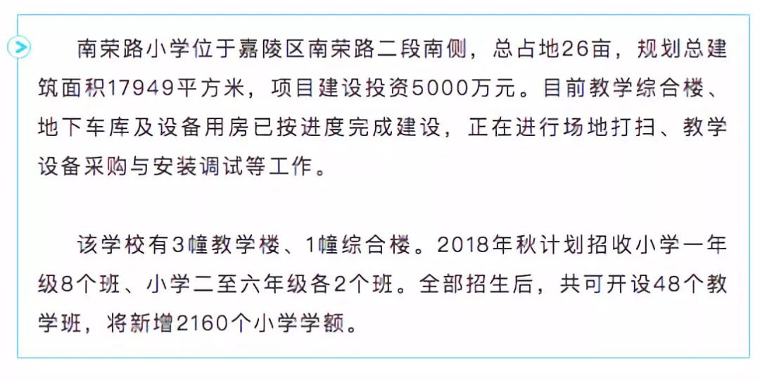 府荆小学占地面积41.4亩,计划设置30个教学班,可容纳学生近1400人。目前主体建设已全面完工,正在进行后期装修,预计8月下旬完成全部建设。